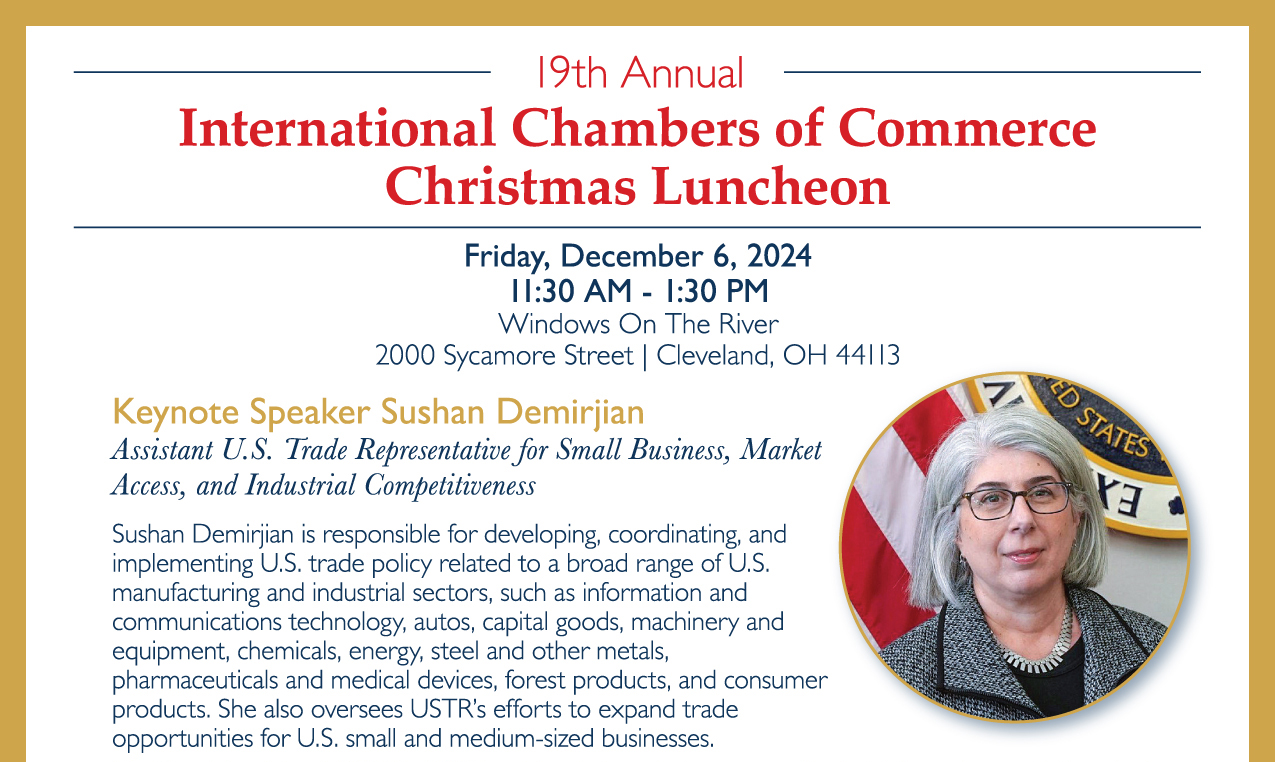 Annual International Chambers Christmas Luncheon We are pleased to announce that the British-American Chamber of Commerce will be hosting the Annual International Chambers Christmas Luncheon at Windows on the River on December 6th. We warmly invite everyone from Cleveland's international community to attend this special event, featuring keynote speaker Sushan Demirjian, who serves as the […]